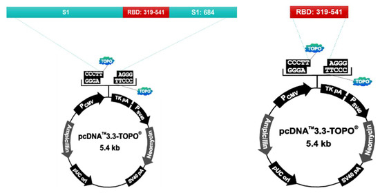 S1 protein and RBD protein recombinant plasmids were prepared using the pcDNA™3.3-TOPO® vector (ThermoFisher, Waltham, MA. United States. Cat No. K8300-01). The vector was injected into the Chinese Hamster Ovary (CHO) cell to express the protein. After culturing the transformed CHO cells, the supernatant is collected, filtered, and purified by column loading (GE healthcare, AKTA prime plus). After purification, the protein is identified by SDS-PAGE and Western Blotting. The purified antigen is used as the vaccine antigen after checking the concentration using Nanodrop (ThermoFisher, Waltham, MA. United States. AZY2017596) (Figure 1).