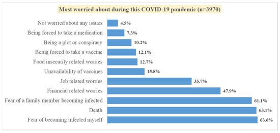 Proportions of the issues respondents worried about most during the COVID-19 pandemic.