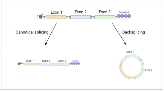 Circular mRNA generation via backsplicing. Modified from []. Figure was created using BioRender tool.