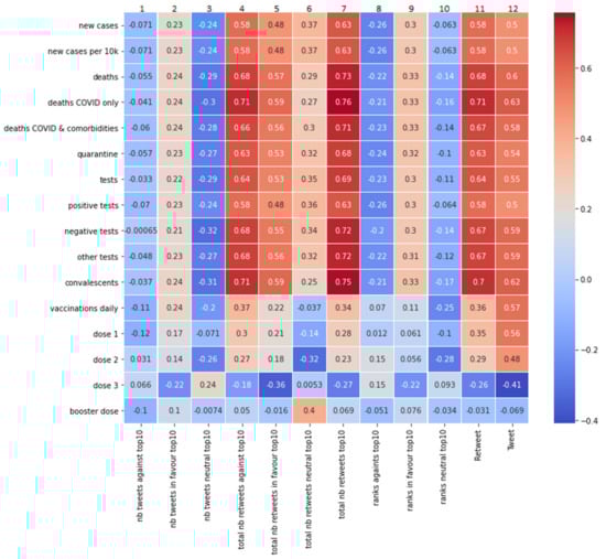 3.6. Correlations between Sentiment in the Top-10 Tweets and the Epidemiological Data