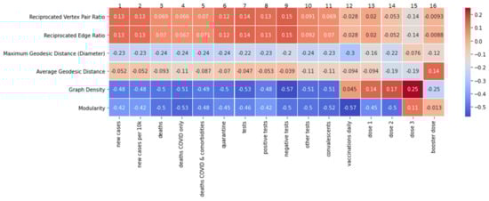 3.7. Correlations between the Overall Network Metrics and the Epidemiological Data