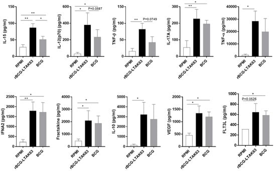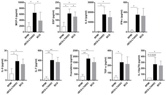 3.4. M1 and M2 Macrophages Infected with rBCG-LTAK63 Display Increased Production of Inflammatory Cytokines