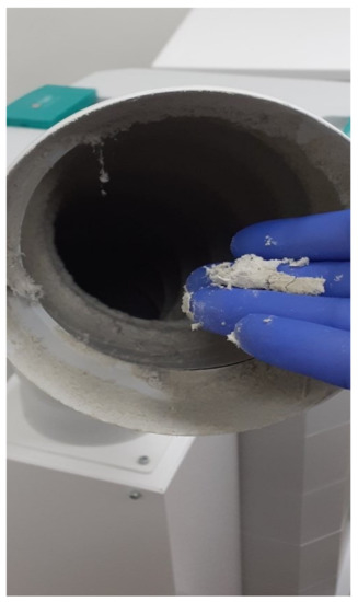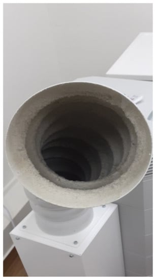 It is highly recommended to frequently inspect, clean, decontaminate the ordinary sieves, and replace both the carbon and the HEPA filters, according to the manufacturers’ guidelines [38]. In case the sieves cleaning is neglected, a velvety cloth-like mass is observed which, together with various macroparticles, microparticles and bristles, blocks the filter and prevents the air that is drawn in from being cleaned by the next specialized filters (Figure 2).