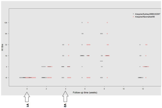 - Hannant, D.; Mumford, J.; Jessett, D. Duration of circulating antibody and immunity following infection with equine influenza virus. Vet. Rec. 1988, 122, 125–128. [Google Scholar] [CrossRef]