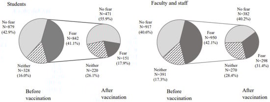 | Fear of vaccination (before vaccination) | Yes | 842 (41.1) | 950 (42.1) |
