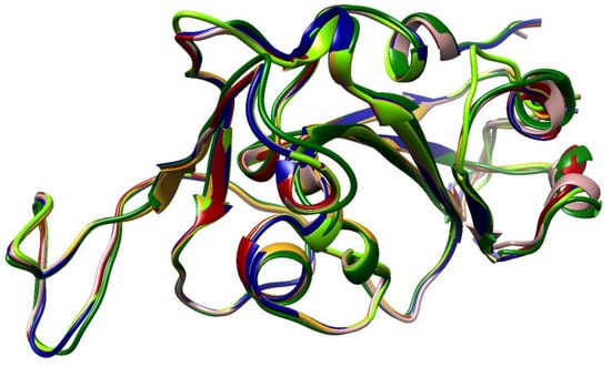- Pettersen, E.F.; Goddard, T.D.; Huang, C.C.; Couch, G.S.; Greenblatt, D.M.; Meng, E.C.; Ferrin, T.E. UCSF Chimera—A visualization system for exploratory research and analysis. J. Comput. Chem. 2004, 25, 1605–1612. [Google Scholar] [CrossRef] [Green Version]
