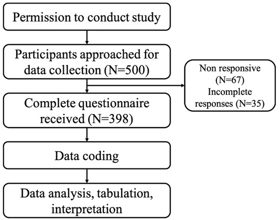 All the Saudi residents with age ≥ 18 years, and those willing to participate were included in this survey. The participants who did not agree or those with ages less than 18 years were excluded from this study. The flow diagram for the current study is presented in Figure 1.
