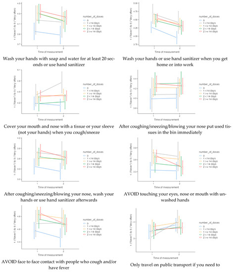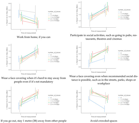 The primary outcome of our study was the change in the 14 precautionary behaviours before (T1) and after (T2) the start of the vaccination programme, depending on the participant’s vaccination status (number of doses) at T2.
