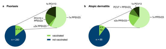 Wellmann, P.; Kromer, C.; Siemer, R.; Klein, S.; Mohr, J.; Lippert, U.; Pinter, A.; Wilsmann-Theis, D.; Mössner, R. Low Pneumococcal Vaccination among Patients with Psoriasis in Germany: Results from Vac-Pso. Vaccines 2022, 10, 1005. https://doi.org/10.3390/vaccines10071005