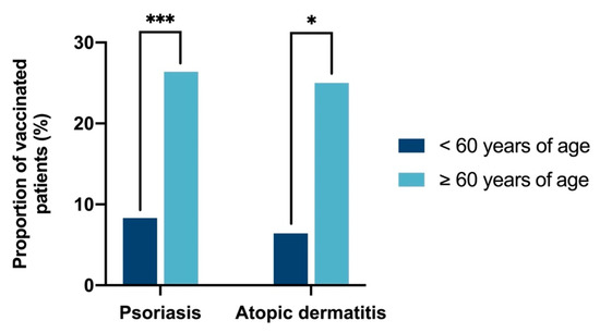 - Kromer, C.; Wellmann, P.; Siemer, R.; Klein, S.; Mohr, J.; Pinter, A.; Wilsmann-Theis, D.; Mössner, R. Influenza Vaccination in Psoriatic Patients-Epidemiology and Patient Perceptions: A German Multicenter Study (Vac-Pso). Vaccines 2021, 9, 843. [Google Scholar] [CrossRef]