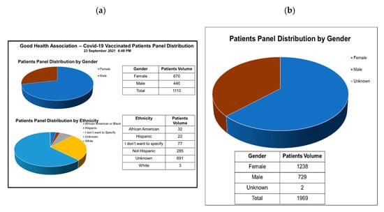 Patients panel distribution and vaccination: (a) by gender; (b) by ethnicity.