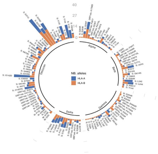 The list of mutations for each VOCs, as labeled by the World Health Organization (WHO), was compiled from https://www.who.int/en/activities/tracking-SARS-CoV-2-variants (accessed on 22 March 2022). For each mutation, all overlapping peptides of length 9 and 10 that overlap a given mutation were considered as candidate HLA restricted epitopes.