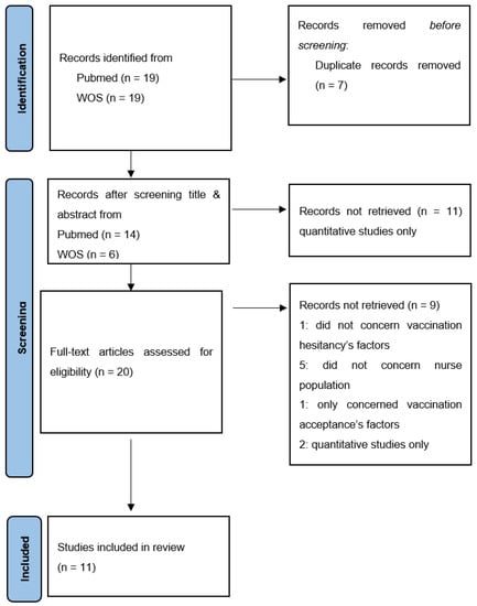 Items that do not deal with the nurses’ flu VH in the title or the abstract were excluded. Quantitative studies, editorials and position papers were excluded.