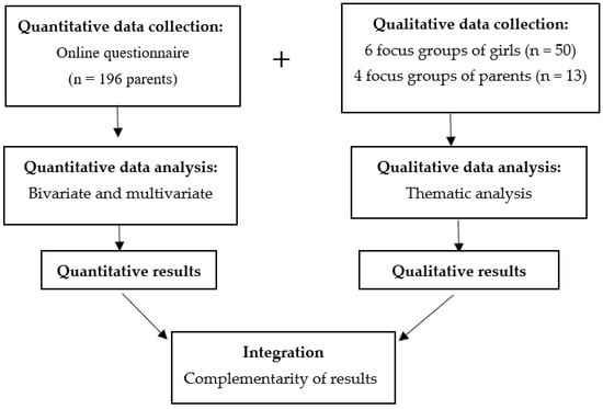 A convenience sample of three public and one private school was recruited; within each school, invitations were sent to parents to complete the online questionnaire and to participate in focus groups. In addition, to reach the largest possible number of participants in the defined geographical area, the online questionnaire was also shared in the social-media and instant-messaging groups of parents from different schools. Parents/caregivers who attended the focus groups were also asked for permission for us to contact their daughters to participate in focus groups with other girls from their own school and of the same approximate age. Groups with parents/caregivers were conducted using video-call platforms (Microsoft Teams and Google Meet) and lasted an average of 34.7 min. They were coordinated by a male psychologist and two research assistants. The girls’ groups lasted an average of 28 min and were coordinated by a female psychologist and two research assistants using a room and schedule provided by the schools.