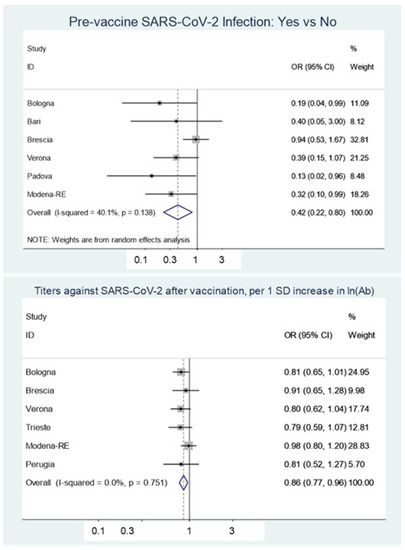 In the present study, the determinants of SARS-CoV-2 infection in the post-vaccinal phase were analyzed on both individual (eight centers) and aggregated (12 centers) data.