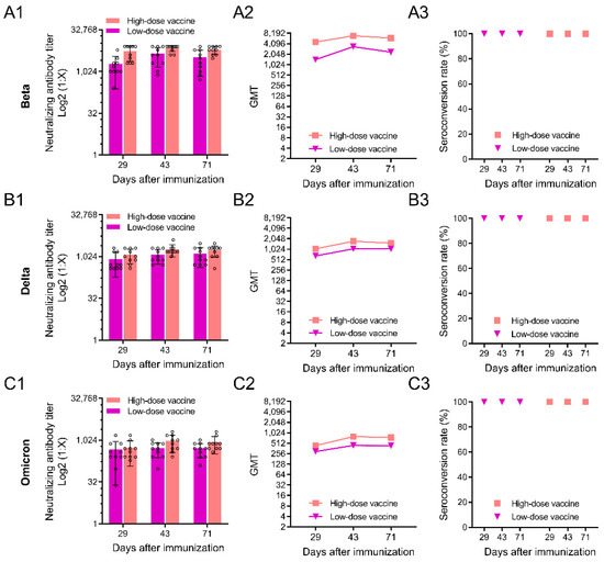 3.3. Neutralizing Antibody Responses against SARS-CoV-2 Variants