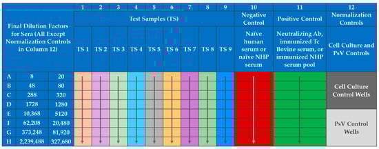 Overall, each virus and species-specific PsVNA characterization was successful in that the performance of the controls allowed for acceptance criteria ranges to be established. When performing a PsVNA to evaluate test samples, each plate must meet all acceptance criteria outlined in