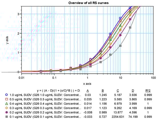 Figure 8 (SUDV)). For each of these RSs, the resulting 4PL curve had well-defined upper and lower asymptotes and typically five dilution points in the linear range of the curve. Subsequent generations of RS were created and further described in the Materials and Method section.