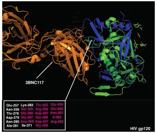 - Hioe, C.E.; Tuen, M.; Chien, P.C.; Jones, G.; Ratto-Kim, S.; Norris, P.J.; Moretto, W.J.; Nixon, D.F.; Gorny, M.K.; Zolla-Pazner, S. Inhibition of Human Immunodeficiency Virus Type 1 gp120 Presentation to CD4 T Cells by Antibodies Specific for the CD4 Binding Domain of gp120. J. Virol. 2001, 75, 10950–10957. [Google Scholar] [CrossRef] [PubMed][Green Version]