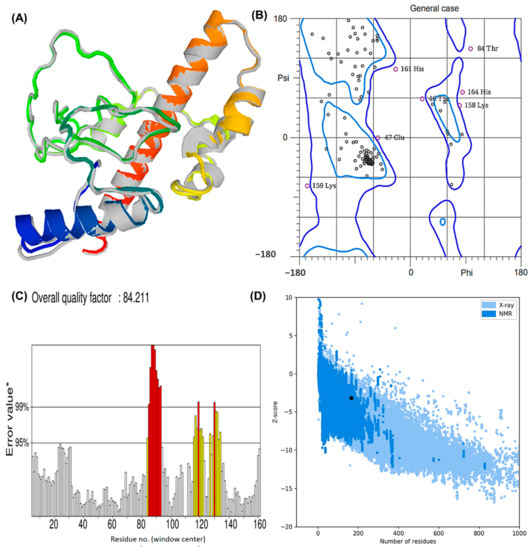 - Wiederstein, M.; Sippl, M.J. ProSA-Web: Interactive Web Service for the Recognition of Errors in Three-Dimensional Structures of Proteins. Nucleic Acids Res. 2007, 35, W407–W410. [Google Scholar] [CrossRef]