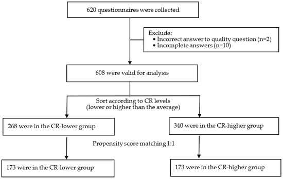 PSM to balance the participants’ characteristics between the CR-lower and CR-higher groups.