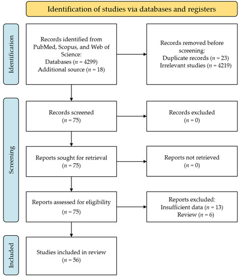 - Page, M.J.; McKenzie, J.E.; Bossuyt, P.M.; Boutron, I.; Hoffmann, T.C.; Mulrow, C.D.; Shamseer, L.; Tetzlaff, J.M.; Akl, E.A.; Brennan, S.E.; et al. The PRISMA 2020 statement: An updated guideline for reporting systematic reviews. BMJ 2021, 372, n71. [Google Scholar] [CrossRef] [PubMed]