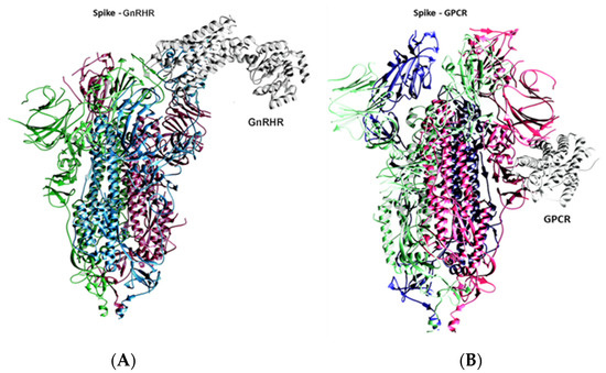(A) Binding of spike protein with GnRHR. (B) Binding of spike protein with GPCR.