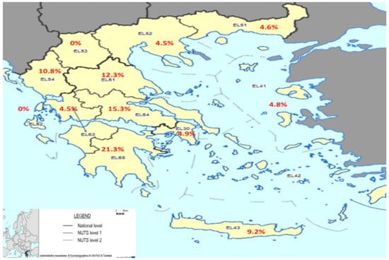 A geographically stratified sampling plan based on regional units (Eurostat’s NUTS-2) was applied in order to produce a representative sample, taking into consideration age group (30–39, 40–49, 50–59, 60–69, 70–79, and 80+) and sex. The required minimum sample size was determined to be about 1100 serum samples from the 13 NUTS level 2 regions, and the sample size for each regional unit from the corresponding region was calculated according to the last census population considering the expected prevalence of 50% with a precision of ±3%, a confidence level of 95%, and a power of 80%. Calculated 50% prevalence according to the sparse data for the prevalence of pertussis in Greece. The proportion of 50% leads to a larger sample size of participants and reduces the probability for error about the value of prevalence []. The serum samples were collected from a nationwide network of General practitioners (GP), including microbiological laboratories of public Hospitals and primary health care facilities. One thousand and five hundred residents were invited to participate in the study and 1169 accepted the invitation to participate (79.38% response rate). During September 2021 to March 2022, a total of 1169 blood samples were collected from a nationwide network of General practitioners (GP), including microbiological laboratories of private and public hospitals and primary health care facilities.