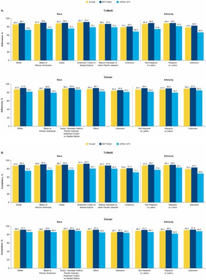 3.4. Vaccine Adherence and Completion by Race, Ethnicity, Urban/Rural Status, and Geographic Region