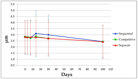 Samples derived from the three formulation approaches (sequential in blue, competitive in green and separate in red) were monitored for attributes relevant for the scope of the study, at different times. Following this approach, we were able to distinguish between the adsorption mechanism caused by strong, intermediate, or weak electrostatic interactions depending on the isoelectric point of each antigen. Importantly, we were able to monitor how the interaction between each antigen with the AlumOH adjuvant varies over time depending on the formulation strategy used. We showed that antigen redistribution on the surface of AlumOH results in homogeneous adjuvant–antigen complexes, independently of the formulation strategy used.