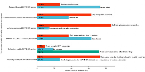 - Wong, L.P.; Alias, H.; Danaee, M.; Ahmed, J.; Lachyan, A.; Cai, C.Z.; Lin, Y.; Hu, Z.; Tan, S.Y.; Lu, Y.; et al. COVID-19 vaccination intention and vaccine characteristics influencing vaccination acceptance: A global survey of 17 countries. Infect. Dis. Poverty 2021, 10, 122–136. [Google Scholar] [CrossRef] [PubMed]