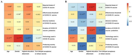 | Demographic | Required Doses of COVID-19 Vaccine a | Effectiveness Threshold of COVID-19 Vaccine b | Adverse Reactions of COVID-19 Vaccine c | Duration of COVID-19 Vaccine Protection d | Technology Used in COVID-19 Vaccine e | Producing Country of COVID-19 Vaccine f |