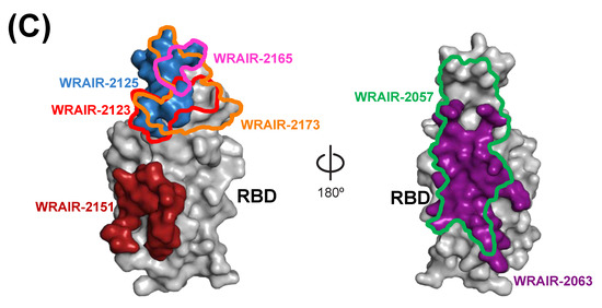 - Yuan, M.; Wu, N.C.; Zhu, X.; Lee, C.-C.D.; So, R.T.Y.; Lv, H.; Mok, C.K.P.; Wilson, I.A. A highly conserved cryptic epitope in the receptor binding domains of SARS-CoV-2 and SARS-CoV. Science 2020, 368, 630–633. [Google Scholar] [CrossRef]