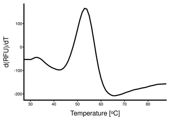 DSF profile of protein solution after refolding, dialysis, and purification. Dialysis was performed using 50 mM Tris-HCl and 100 mM NaCl at pH 8.5 overnight, and purification and concentration were performed on a Ni-NTA column.