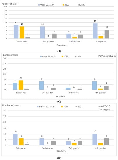 During 2021, in parallel with the relaxation of non-pharmacological preventive measures, IPD incidence began to increase again, reaching pre-pandemic levels in the second and third quarters of 2021 [5,6,7].