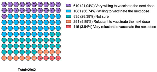 Willingness to receive the next dose of COVID-19 vaccines in recovered people (n = 2942).