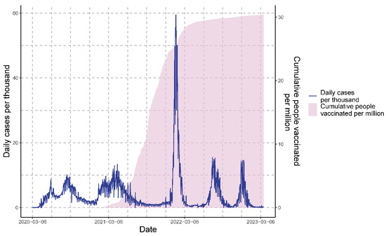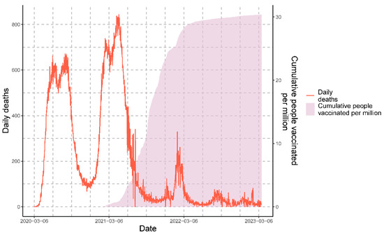 Raw data on infections, deaths, and vaccinations for Peru were retrieved from the World Health Organization’s COVID-19 Dashboard [3]. These data included the period from 6 March 2020 to 20 March 2023.