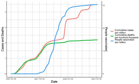 - WHO Coronavirus (COVID-19) Dashboard. Available online: https://covid19.who.int/ (accessed on 20 March 2023).