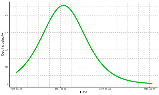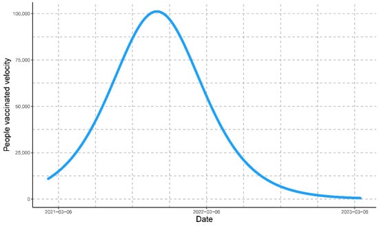With a correlation coefficient , and deriving Equation (5), we can obtain the equation for the speed of infected people, expressed by Equation (6):