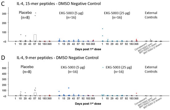3.6. Long-Term Cellular Immunity Elicited by EXG-5003 following Administration of Licensed Vaccines