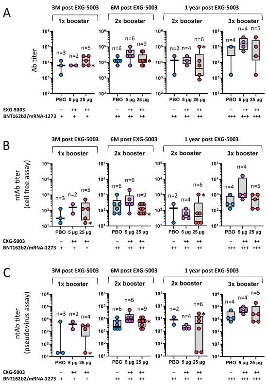 3.3. Short-Term Humoral Immunity Elicited by EXG-5003