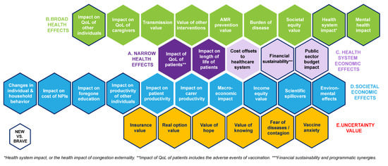 - Bell, E.; Neri, M.; Steuten, L. Towards a Broader Assessment of Value in Vaccines: The BRAVE Way Forward. Appl. Health Econ. Health Policy 2022, 20, 105–117. [Google Scholar] [CrossRef]