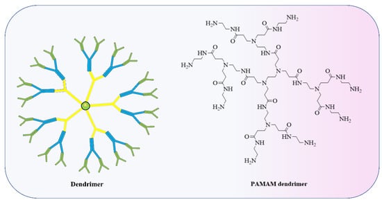 Figure 4. Dendrimers are specific polymeric structures made up of a set number of molecules arranged around a central PAMAM, poly(amidoamine) used to form LNP.