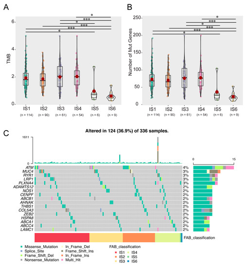 Somatic mutation and copy number alterations were analysed using the cBio Cancer Genomics Portal [24] (cBioPortal, http://www.cbioportal.org, accessed on 7 May 2021), and p < 0.05 indicated a statistically difference.