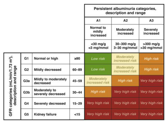 27. National Kidney Foundation. KDIGO 2012 Clinical Practice Guideline for the Evaluation and Management of Chronic Kidney Disease. Kidney Int. 2013, 3, 5–14. Available online: http://www.kdigo.org/clinical_practice_guidelines/pdf/CKD/KDIGOCKD-MBDGLKISuppl113.pdf%5Cn (accessed on 15 September 2022).