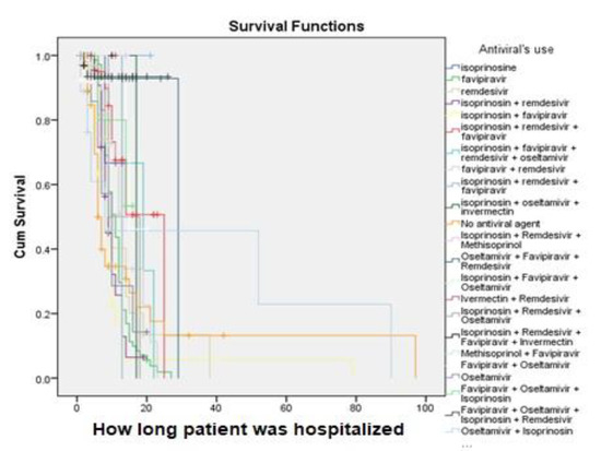 Figure 4. Kaplan–Meier survival analysis of the antiviral agents used.