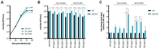 - Odon, V.; Fros, J.J.; Goonawardane, N.; Dietrich, I.; Ibrahim, A.; Alshaikhahmed, K.; Nguyen, D.; Simmonds, P. The role of ZAP and OAS3/RNAseL pathways in the attenuation of an RNA virus with elevated frequencies of CpG and UpA dinucleotides. Nucleic Acids Res. 2019, 47, 8061–8083. [Google Scholar] [CrossRef]