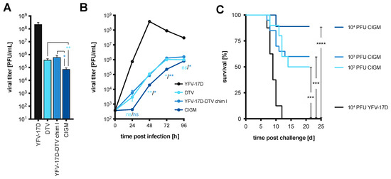 3.3. Chimeric YFV-17D-DTV Protects against DTV In Vivo