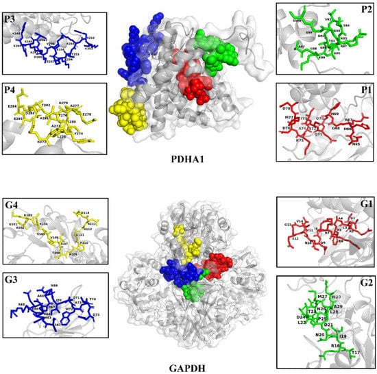 Three-dimensional structure of PDHA1 and GAPDH proteins and location of the predicted epitope peptides.
