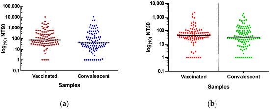 - Maciola, A.K.; la Raja, M.; Pacenti, M.; Salata, C.; de Silvestro, G.; Rosato, A.; Pasqual, G. Neutralizing Antibody Responses to SARS-CoV-2 in Recovered COVID-19 Patients Are Variable and Correlate With Disease Severity and Receptor-Binding Domain Recognition. Front. Immunol. 2022, 13, 95. [Google Scholar] [CrossRef]